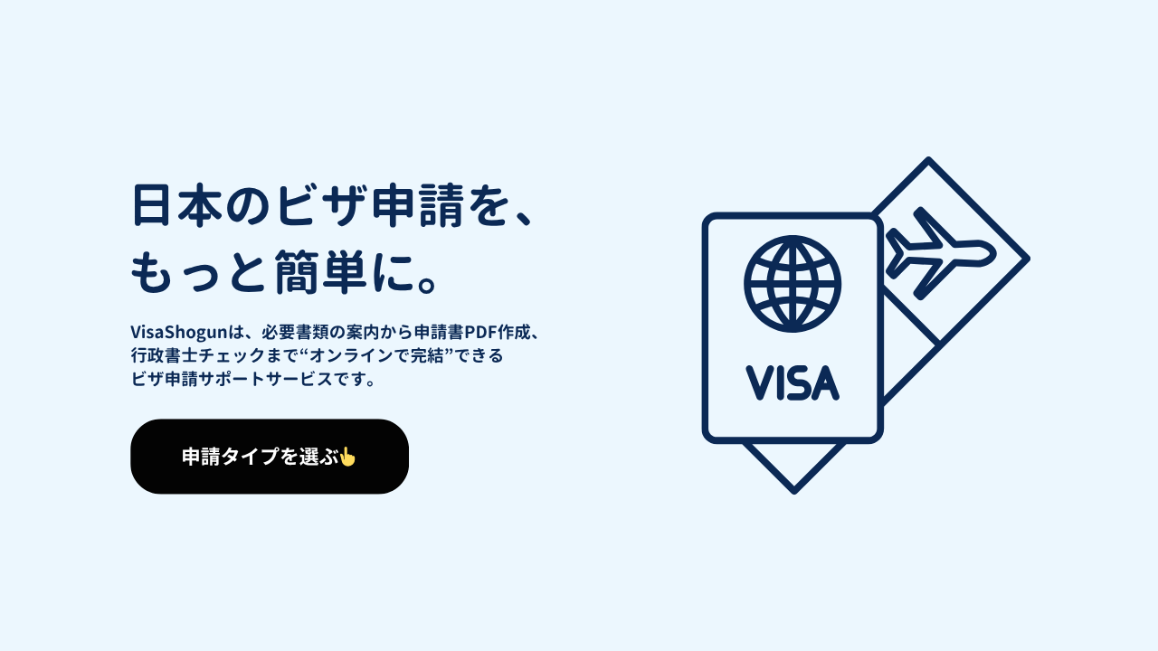 VisaSHOGUNは、外国人の方が日本でビザを更新・取得するために必要な書類準備を、